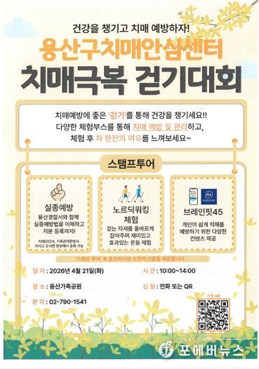 행사 참여는 용산구치매안심센터 전화나 포스터 내 정보무늬(QR코드)를 통해 신청할 수 있다. 행사 당일 현장 등록도 가능하다.