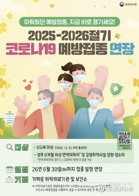 접종 대상은 ‘2025-2026절기(LP.8.1) 코로나19 백신’을 아직 접종하지 않은 고위험군으로 ▲65세 이상 어르신 ▲면역저하자 ▲감염취약시설 입원·입소자가 해당된다.