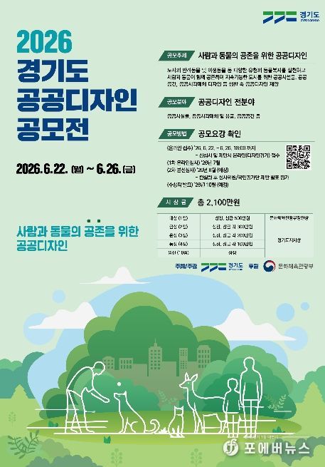 [ 포에버뉴스 김경순 기자 ] 경기도가 ‘사람과 동물의 공존을 위한 공공디자인’이란 주제로 제20회 ‘2026년 경기도 공공디자인 공모전’을 6월 22일부터 26일까지 개최한다.