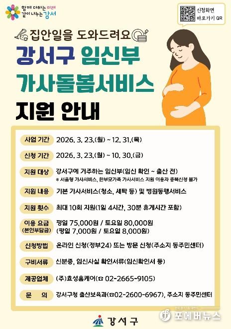 구 관계자는 “임신부들이 가사 노동 부담을 덜고, 태교와 건강 관리에 집중할 수 있도록 지원을 확대했다”며, “앞으로도 저출산 극복과 아이 키우기 좋은 강서구를 만들기 위해 실질적인 복지 정책을 지속 발굴하겠다”고 말했다.