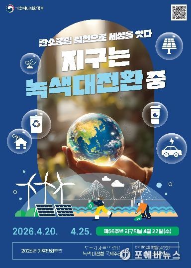 [ 포에버뉴스 김경순 기자 ] 연수구는 제56주년 ‘지구의 날(4월 22일)’을 맞아 오는 4월 20일부터 24일까지 ‘2026년 기후변화주간’을 운영한다.