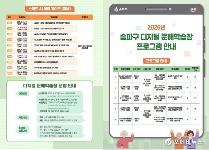 송파구 관계자는 “이제 디지털 기술과 AI 사용법은 일상에서 꼭 필요한 역량”이라며 “주민 누구나 생활 속에서 자연스럽게 관련 교육을 접할 수 있게 지원을 더욱 확대해 나가겠다”라고 밝혔다.