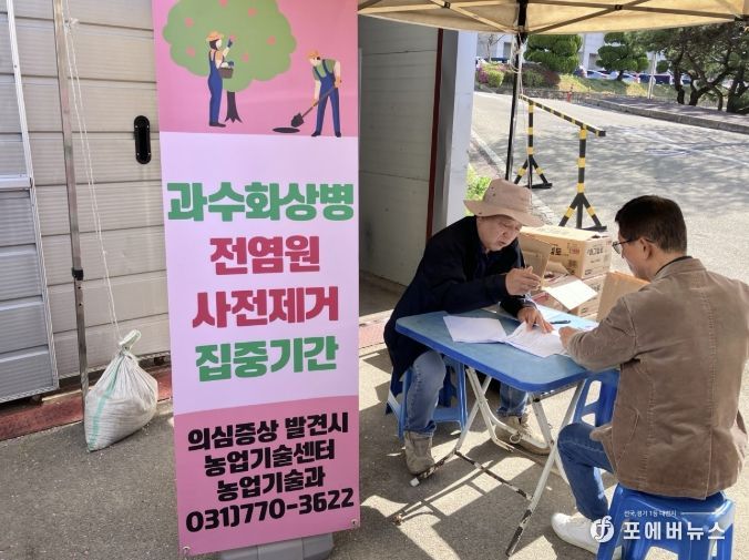 이에 군은 개화기 사용 등록 약제를 활용한 단계적 방제 체계를 바탕으로 재배 농가에 약제를 공급하고, 시기에 맞춘 적기 살포를 안내하고 있다. 이번 조치는 개화기 감염원을 사전에 차단하고 안정적인 과원 관리를 지원하기 위해 추진됐다.