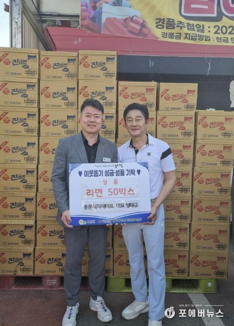 [ 포에버뉴스 김경순 기자 ] 양평군 용문면은 지난 19일, 용문면 소재 용문식자재마트가 관내 어려운 이웃을 위해 라면 50박스를 기부했다고 밝혔다.