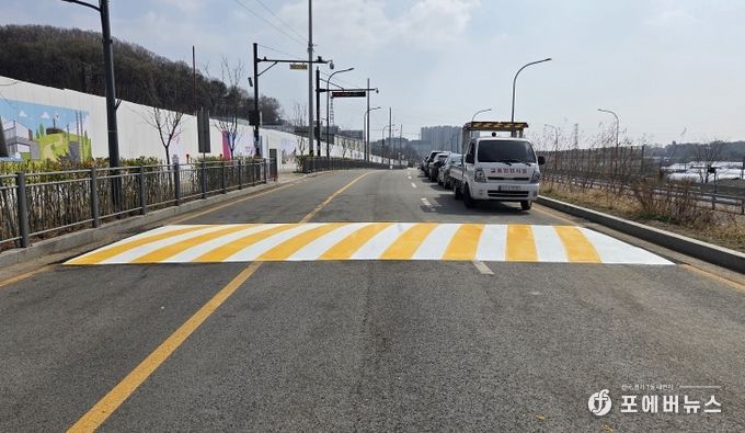 [ 포에버뉴스 김경순 기자 ] 오산시는 가수초등학교 통학로 안전 확보를 위해 인근 우미린 레이크시티 아파트 공사장 진출입로 주변에 과속방지턱 4개소를 신설했다고 밝혔다.