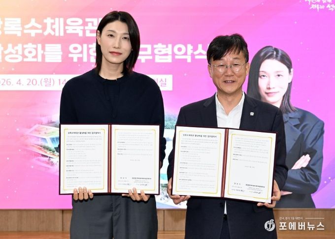 이번 협약은 안산시 출신 세계적인 배구선수 김연경 이사장이 이끄는 재단과 협력해 상록수체육관 명칭을 ‘상록수 김연경체육관’으로 변경하고, 다양한 배구 관련 사업을 함께 추진하기 위해 마련됐다.