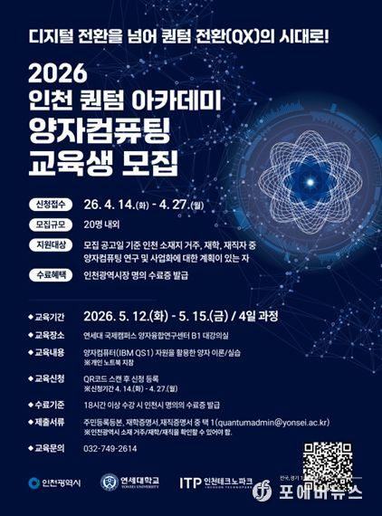 시는 연세대학교와 협력해 ‘2026 인천 퀀텀 아카데미’의 교육생을 모집한다.