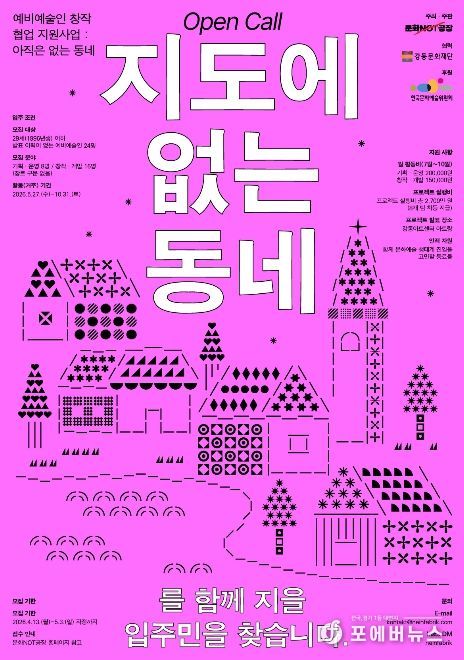 [ 포에버뉴스 김경순 기자 ] 강동문화재단과 문화NOT공장(대표 신수연)이 예비 예술인의 실험적 성장을 지원하는 '예비 예술인: 아직은 없는 동네' 참여자를 오는 5월 3일까지 모집한다.