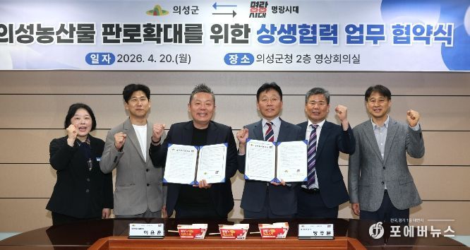 [ 포에버뉴스 사공선 기자 ] 의성군은 4월 20일 군청 영상회의실에서 명랑시대외식청년창업협동조합과 의성 농특산물 판로 확대를 위한 상생협력 업무협약(MOU)을 체결하며 협력 관계를 이어간다고 밝혔다.