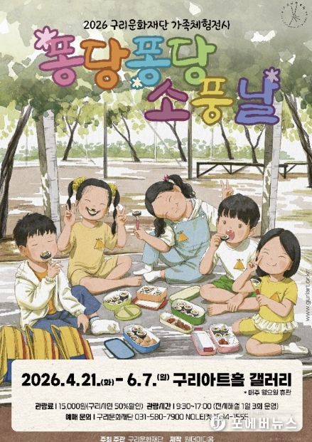 [ 포에버뉴스 김경순 기자 ] (재)구리문화재단은 4월 21일부터 6월 7일까지 구리아트홀 갤러리에서 가족 체험전시 '퐁당퐁당 소풍날'을 개최한다고 밝혔다.