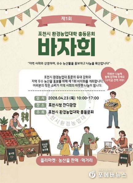 한편, 포천시 환경농업대학은 매년 전문 농업인력을 양성하며 지역 농업 발전의 중추적인 역할을 해오고 있으며, 총동문회는 이번 바자회를 기점으로 지역사회를 위한 다양한 공헌 활동을 이어갈 계획이다.