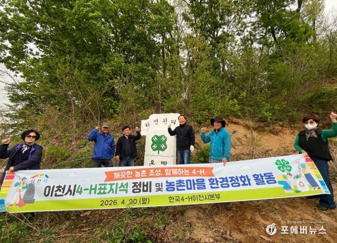 [ 포에버뉴스 김경순 기자 ] 한국4-H이천시본부는 지난 20일 이천시 일원에서 회원 10명이 참여한 가운데 4-H 표지석 정비와 마을 환경정화 활동을 실시했다. 이는 지역 내 4-H 표지석의 체계적인 관리와 쾌적한 마을환경 조성을 위해 추진됐다.
