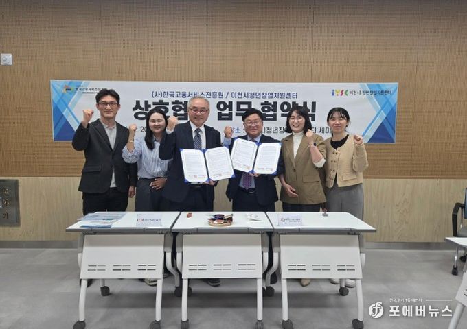 [ 포에버뉴스 김경순 기자 ] 이천시는 청년 취업 및 창업 지원 강화를 위해 사단법인 한국고용서비스진흥원과 이천시 청년창업지원센터가 지난 4월 15일 센터 세미나실에서 업무협약(MOU)을 체결했다고 밝혔다.