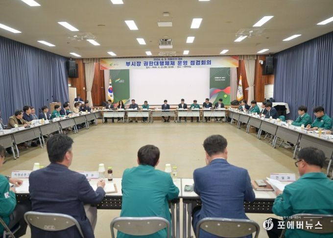 [ 포에버뉴스 김경순 기자 ] 여주시는 지난 4월 21일 시청 4층 대회의실에서 김광덕 부시장 주재로 ‘부시장 권한대행체제 운영 점검회의’를 개최했다. 이번 회의는 20일 여주시장이 제9회 전국동시지방선거 시장예비후보로 등록함에 따라 부시장 권한대행 체제 전환으로 시정의 안정과 업무의 연속성을 유지하고 행정 공백을 최소화하고자 마련했다.