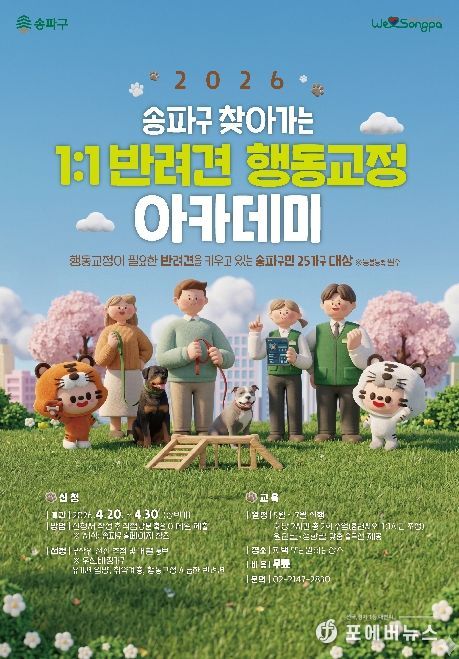 송파구 관계자는 “반려견 문제행동은 전문가의 손길이 닿으면 강아지도, 보호자도, 이웃도 모두 편안해진다”라며 “성숙한 반려 문화를 만드는 데 송파구가 든든한 동반자가 되겠다”라고 전했다.
