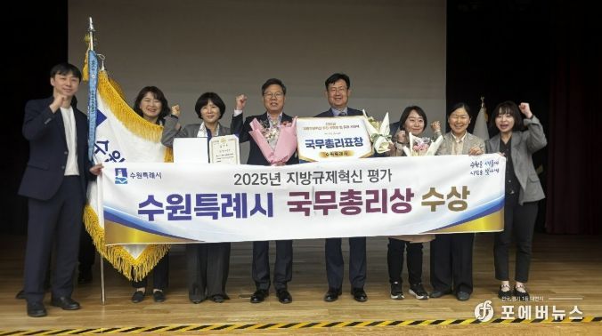 [ 포에버뉴스 김경순 기자 ] 수원특례시가 행정안전부 주관 ‘2025년도 지방규제개혁 유공’ 평가에서 규제개혁 성과를 인정받아 국무총리 기관 표창을 받았다. 시상식은 22일 정부세종청사에서 열렸다. 수원시는 개인 표창도 받았다.