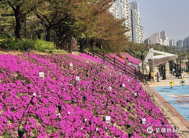 4월 중순부터 피기 시작한 꽃잔디는 4월 말에 만개할 예정이며, 5월까지 진분홍 경관을 연출할 예정이다.