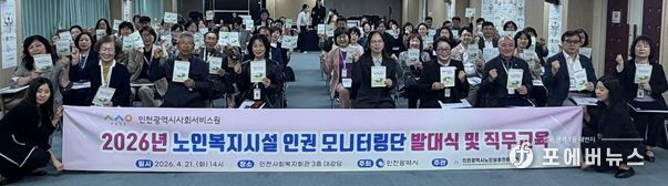 [ 포에버뉴스 김경순 기자 ] 인천시사회서비스원 소속 인천시노인보호전문기관은 최근 노인의 안전과 인권을 지키는 ‘노인복지시설 인권모니터링단’ 발대식을 열고 올해 활동을 시작했다고 23일 밝혔다.