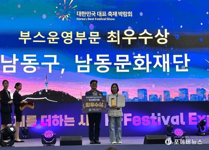 [ 포에버뉴스 김경순 기자 ] 인천 남동문화재단은 지난 17~19일 수원컨벤션센터에서 열린 제6회 대한민국 축제 엑스포에서 제26회 소래포구축제 홍보로 부스 운영 부문 최우수상을 받았다고 23일 밝혔다.