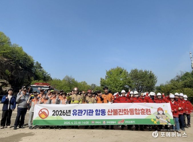 [ 포에버뉴스 김경순 기자 ] 구리시는 산불 발생 시 신속하고 체계적인 대응능력 강화를 위해 지난 4월 22일 고구려대장간마을 주차장에서 ‘2026년 유관기관 합동 산불 진화 통합훈련’을 실시했다고 밝혔다.