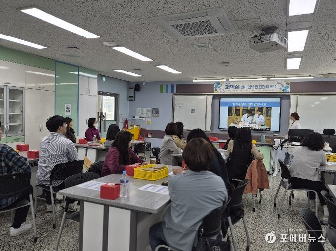 교원과 실무사 등 40명이 참여한 이번 연수는 과학실험실 내 안전사고를 사전에 예방하고, 안심하고 실험할 수 있는 안전한 교육 환경을 조성하기 위해 마련했다.