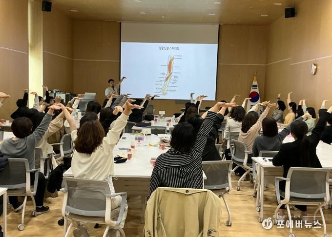 연수는 물리치료사와 함께하는 자세 교정 및 스트레칭 프로그램으로 시작됐다. 참여자들은 업무로 누적된 신체적 긴장을 완화하고 스스로의 몸 상태를 점검하는 시간을 가지며, 건강한 신체를 기반으로 한 안정적인 업무 수행의 중요성을 되새겼다.