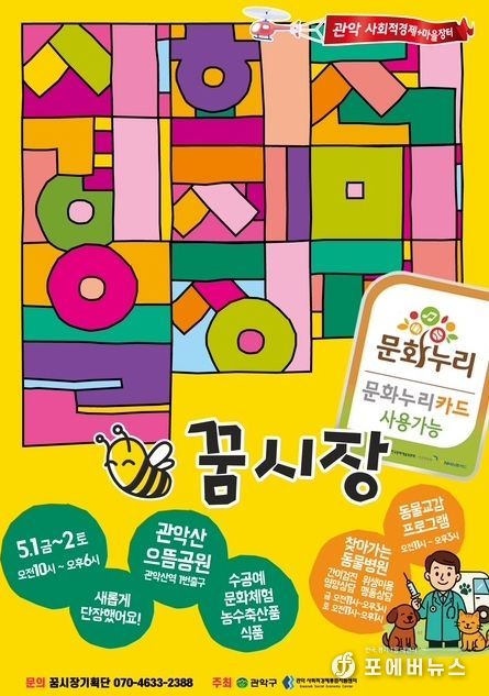 [ 포에버뉴스 김경순 기자 ] 관악구가 오는 5월 1일과 2일 양일간 관악산 으뜸공원에서 사회적경제장터 ‘꿈시장’과 ‘찾아가는 동물병원’을 함께 개최해 봄나들이객을 반기는 풍성한 콘텐츠를 선보인다.