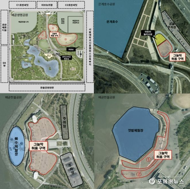 성창열 공원녹지국장은 “그늘막 설치 허용을 통해 가족 단위 방문객과 시민들이 보다 편안하게 공원을 이용할 수 있을 것으로 기대한다”라며 “모두가 함께 사용하는 공간인 만큼 성숙한 시민의식으로 깨끗하고 안전한 공원 이용에 동참해 주시길 바란다”라고 말했다.