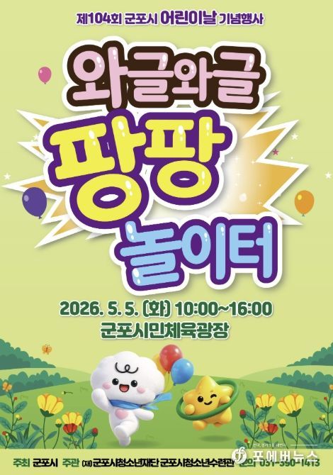 [ 포에버뉴스 김경순 기자 ] 군포시는 제104회 어린이날을 맞아 오는 5월 5일 오전 10시부터 오후 4시까지 군포시민체육광장에서 ‘와글와글 팡팡 놀이터’를 주제로 어린이날 기념행사를 개최한다.