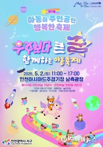 [ 포에버뉴스 김경순 기자 ] 인천 서구는 제104회 어린이날을 맞이하여 오는 5월 2일 오전 11시부터 오후5시까지 인천아시아드주경기장 남측광장에서 제9회 아동이 주인공인 행복한 축제를 개최한다.