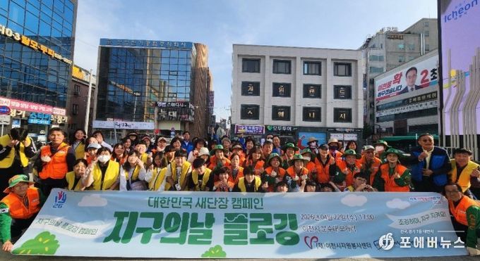 [ 포에버뉴스 김경순 기자 ] (재)이천시자원봉사센터, 이천시지속가능발전협의회, 창전청소년센터는 4월 22일 ‘대한민국 새 단장 지구의 날 플로깅’ 캠페인을 공동으로 개최했다.