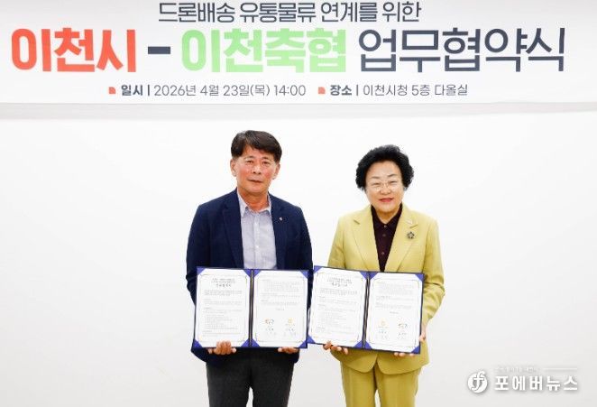 [ 포에버뉴스 김경순 기자 ] 이천시는 23일 이천축산업협동조합(이하 이천축협)과 ‘드론배송 유통물류 연계를 위한 업무협약’을 체결했다.
