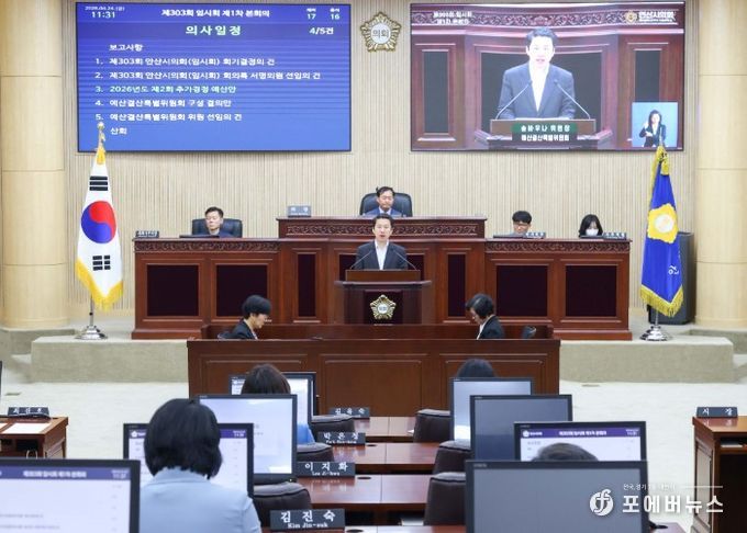 [ 포에버뉴스 김경순 기자 ] 안산시의회가 24일 제303회 임시회를 개최해 고유가 피해지원 사업비가 반영된 2026년도 제2회 추가경정 예산안을 의결했다.