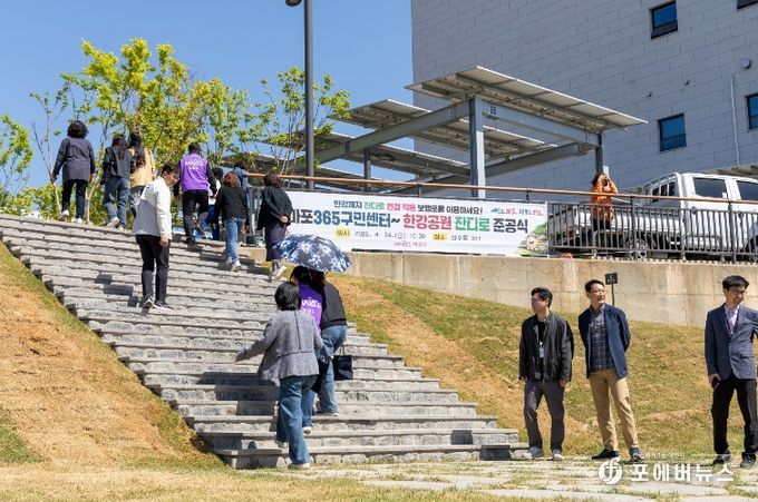 [ 포에버뉴스 김경순 기자 ] 마포구는 마포365구민센터와 한강공원을 연결하는 녹색 보행로인 ‘잔디로’를 조성하고 4월 24일 오전 준공식을 개최했다.