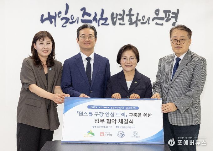 [ 포에버뉴스 김경순 기자 ] 서울 은평구는 지난 23일 서북병원, 은평구치과의사회, ㈜센트디아와 함께 의료취약계층을 위한 ‘원스톱 구강 안심 트랙 구축’ 업무협약을 체결했다고 밝혔다.