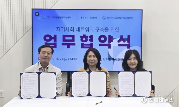 [ 포에버뉴스 김경순 기자 ] 동두천시글로벌인재교육센터는 지난 24일 동두천시가족센터, 동두천시다함께돌봄센터1호점(경기도아동돌봄동두천센터)과 함께 지역사회 네트워크 구축을 위한 3자 간 업무협약(MOU)을 체결했다고 밝혔다.