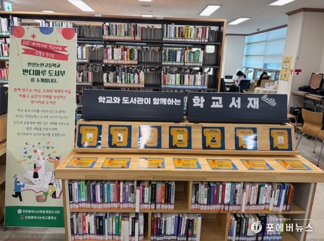 ‘학교 서재’는 계양도서관 종합자료실 내 특별 전시 공간으로, 매월 교내 학생·교직원·학부모 등 학교 공동체를 소개하고, 각 단체의 추천 도서를 12월까지 소개하는 참여형 서가이다.