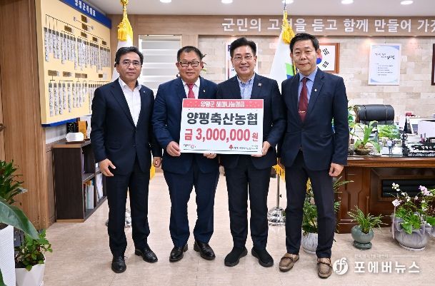 이에 전진선 양평군수는 “지역 축산농가를 위해 노력하는 양평축산농협의 따뜻한 나눔에 깊이 감사드린다”며 “축산인들의 따뜻한 마음이 지역사회에 큰 힘이 될 것”이라고 밝혔다.