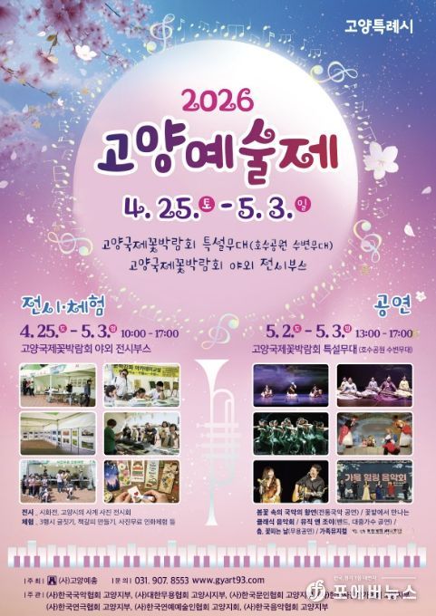 [ 포에버뉴스 김경순 기자 ] 고양특례시의 봄을 수놓는 지역 예술 축제 ‘2026 고양예술제’가 오는 5월 3일까지 고양국제꽃박람회 특설무대와 야외 전시부스에서 개최된다.