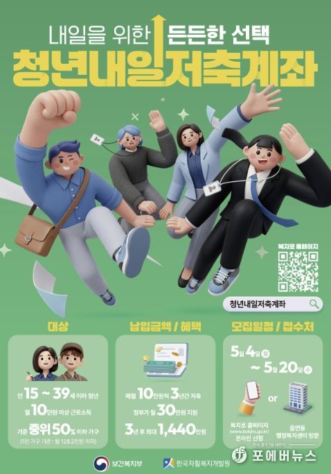 [ 포에버뉴스 김경순 기자 ] 부천시는 일하는 저소득층 청년의 안정적인 사회 정착과 자산 형성을 지원하기 위해 ‘2026년 청년내일저축계좌’ 신규 가입자를 5월 4일부터 5월 20일까지 모집한다.