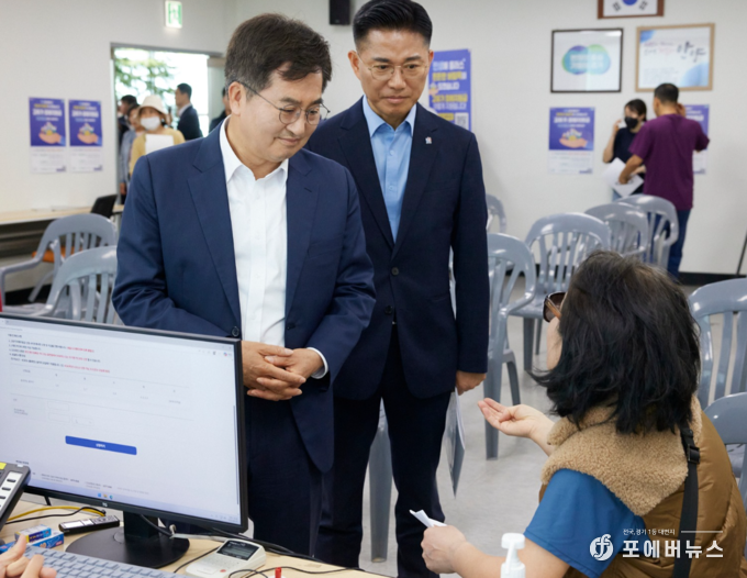 김 지사는 이날 자신의 사회관계망서비스(SNS)를 통해 “첫날인 오늘, 안양의 관양동 행정복지센터를 찾아 현장을 점검하고 주민분들을 만났다”고 밝혔다.