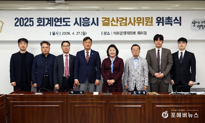 [ 포에버뉴스 김경순 기자 ] 경기 시흥시의회가 4월 27일 의회운영위원회 회의장에서 2025회계연도 시흥시 결산검사위원 위촉식을 개최했다.