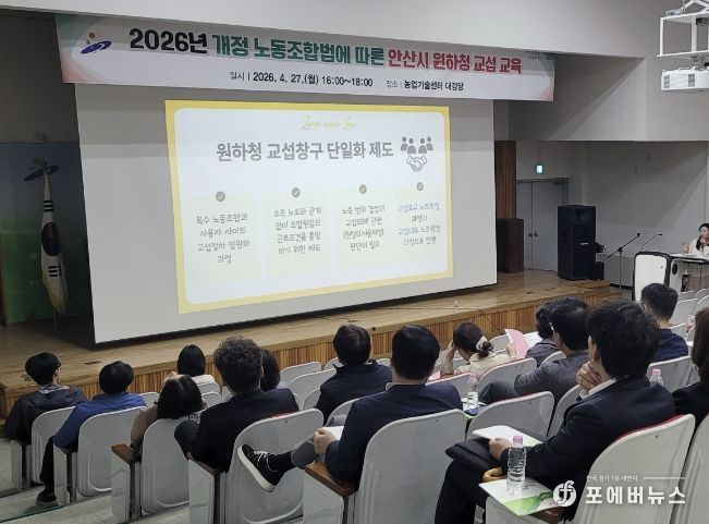 [ 포에버뉴스 김경순 기자 ] 안산시는 지난 27일 농업기술센터 대강당에서 5급 이상 간부공무원을 대상으로 원·하청 교섭 교육을 진행했다고 28일 밝혔다.