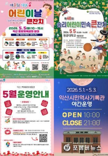정헌율 익산시장은 "어린이날 연휴를 맞아 축제부터 이색 체험, 생태 힐링까지 모든 세대가 만족할 수 있는 콘텐츠를 내실 있게 준비했다"며 "익산의 아름다운 자연과 문화를 통해 가족과 함께 행복하고 소중한 추억을 만드시길 바란다"고 말했다.