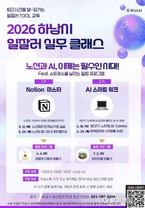 [ 포에버뉴스 김경순 기자 ] 하남시는 관내 청년들이 현장에서 바로 활용할 수 있는 실무 역량을 키우고 또래 청년 간 교류 기회를 확대하기 위해 오는 5월부터 ‘2026년 하남시 일잘러 실무클래스’를 운영하고 1기와 2기 참여자를 모집한다고 밝혔다.