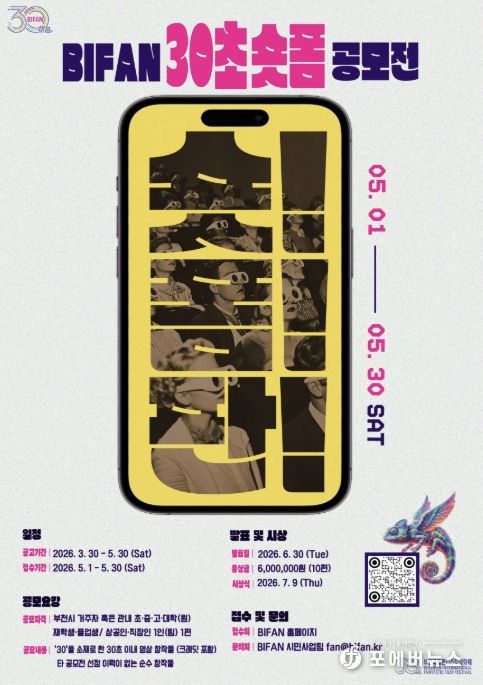[ 포에버뉴스 김경순 기자 ] 부천시는 부천국제판타스틱영화제(BIFAN)와 함께 ‘숏! 폼! 판! BIFAN 30초 숏폼 공모전’을 열고, 제30회를 맞은 영화제를 기념해 시민 참여형 프로그램을 운영한다.