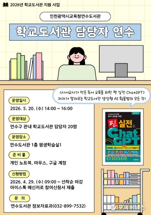 [ 포에버뉴스 김경순 기자 ] 인천광역시교육청연수도서관은 5월 20일 학교도서관 담당자의 실무 역량을 높이기 위한 ‘학교도서관 담당자 연수’를 운영한다.