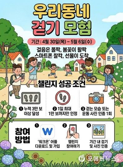 오는 4월 30일부터 5월 6일까지 운영될 이번 프로그램은 아이들이 실내에서 스마트폰 등 디지털 기기에 의존하는 시간을 줄이고, 봄꽃이 피는 야외로 나가 일상 속 신체 활동을 즐길 수 있도록 하는 데 목적을 뒀다.