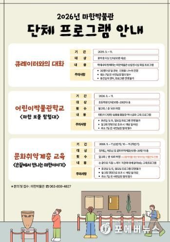 익산시 관계자는 "이번 프로그램이 어린이부터 어르신까지 전 세대가 마한의 역사와 문화를 깊이 이해하고 즐길 수 있는 뜻깊은 기회가 되길 바란다"고 말했다.