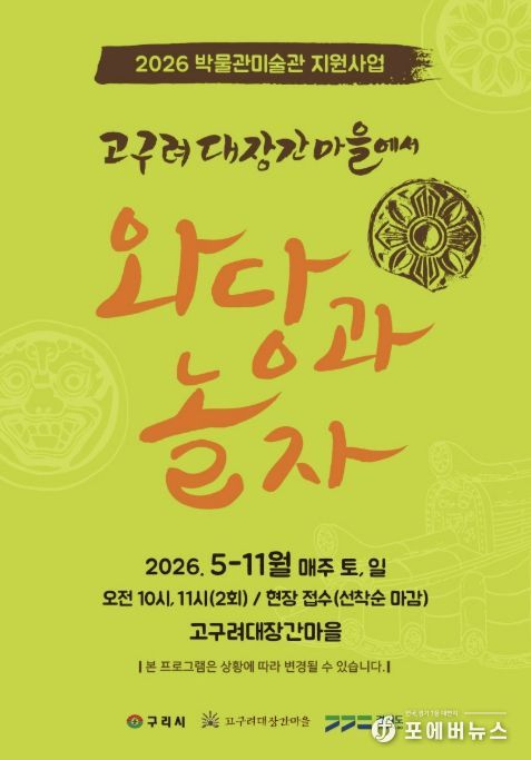 [ 포에버뉴스 김경순 기자 ] 구리시는 오는 5월 2일부터 11월 1일까지 매주 주말 고구려대장간마을에서 2026년 경기도 박물관·미술관 지원사업의 하나로 ‘고구려대장간마을에서 와당과 놀자’ 체험 행사를 운영한다고 밝혔다.